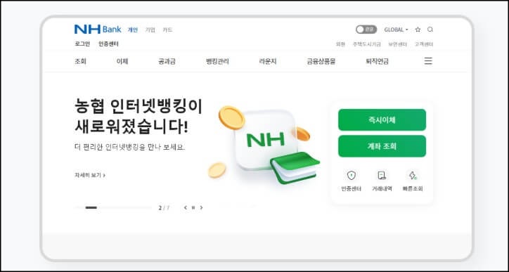 인터넷으로 간편하게 은행 업무를 처리하고 싶다면 농협 인터넷뱅킹 홈페이지 이용이 필수이다. 공과금 납부부터 계좌이체, 예적금 가입까지 대부분의 서비스가 비대면으로 가능하니 미리 알아두면 유용하다. 이 글에서는 농협 인터넷뱅킹(개인) 홈페이지 바로가기 링크와 함께 주요 기능 및 공인인증서 발급 방법을 정리해 보도록 하겠다.