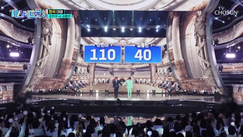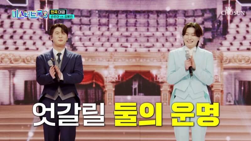 네번째 무대에서는 대국민 응원투표 1, 2위를 다투고 있는 김용빈과 손빈아의 대결이 펼쳐졌다. 두 사람은 진성의 내가 바보야로 정통 트로트 대결을 펼쳤고 완벽한 무대라는 극찬을 받았으나 손빈아가 110점을 받으면서 40점을 받은 김용빈을 큰 점수차로 이겼다. (손빈아의 본명도 용빈이라는 사실~)