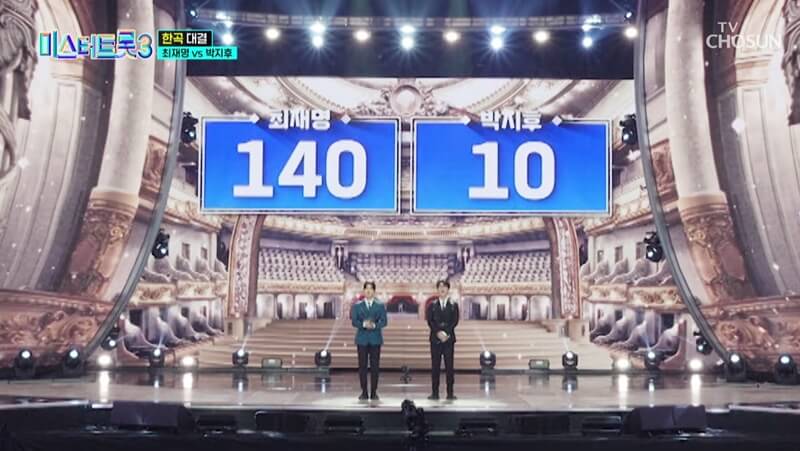 다섯번째 무대에서는 음색 강자들인 최재명과 박지후가 오승근의 있을 때 잘해를 선곡해 예상 밖의 퍼포먼스를 선보였다. 목상태가 안 좋은 상태임에도 불구하고 유니크하고 기분 좋게 들렸다는 칭찬을 받았지만 최재명이 140점을 받아 무려 130점 차로 박지후에게 압도적인 승리를 차지했다.