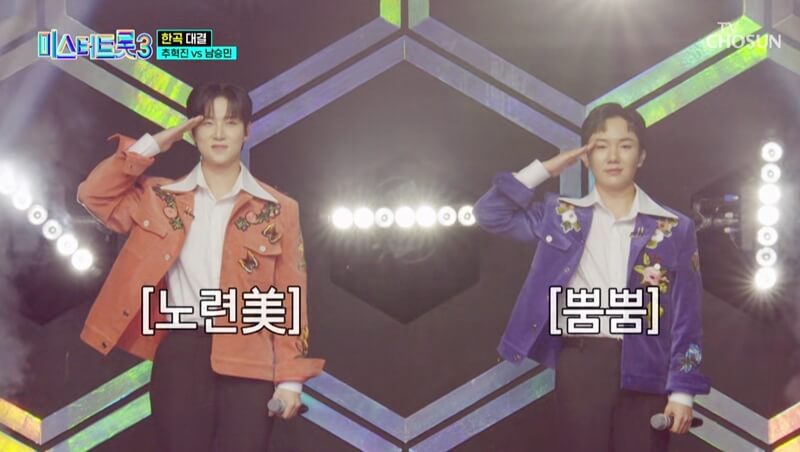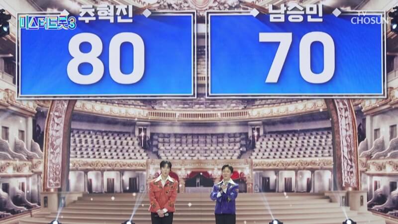 여섯번째 무대에서는 추혁진과 남승민이 대결했다. 이들은 조항조의 가지 마를 선곡 하여 한층 성장한 실력을 증명했고, 마스터 점수에서 추혁진이 남승민에게 1표 차로 뒤졌지만 국민대표단에게 20점을 받아 총 80점으로 역전승을 거두기도 했다.