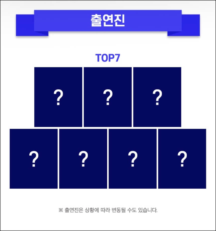 미스터 트롯3 콘서트 무대에는 TOP7이 출연하는데 TOP7은 오늘밤 10시에 방송되는 11회에서 공개되기 때문에 아직 TOP7은 누가될지 모르며 출연진은 상황에 따라서 변동될수도 있다.
