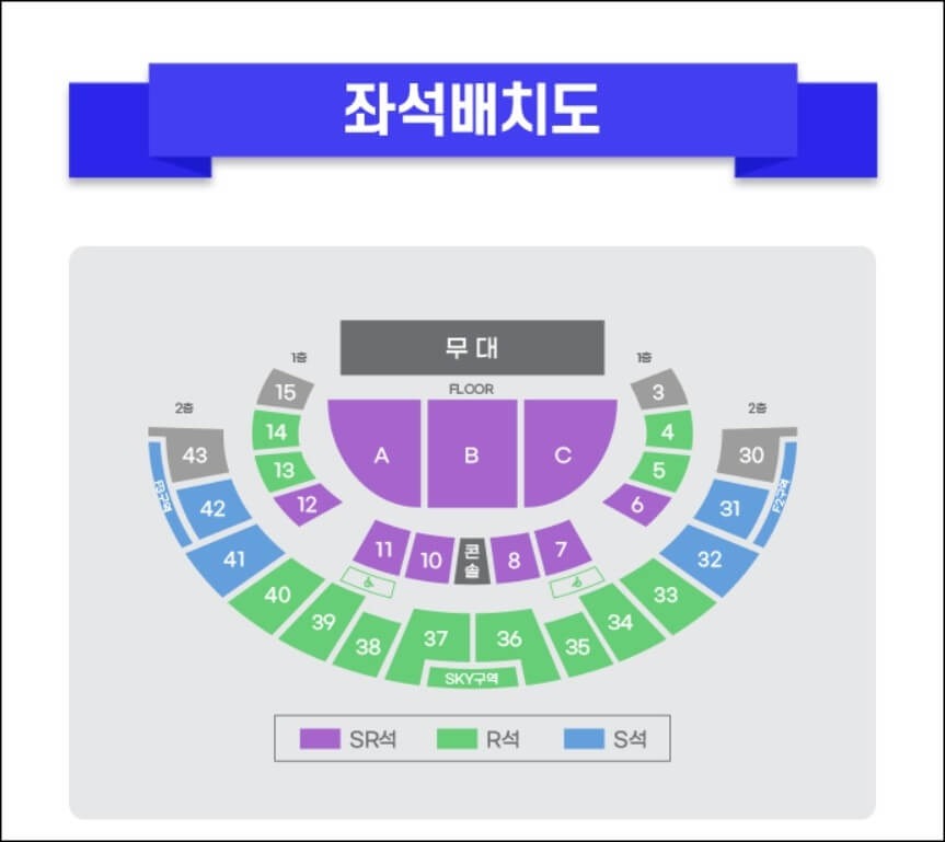 미스터 트롯3 콘서트는 모든 좌석을 지정석으로 운영되고 A, B, C구역인 FLOOR석은 단차가 없는 평지에 간이의자가 설치 되고, 1, 2층은 계단식 좌석이기 때문에 A,B,C 구역의 뒷 좌석보다는 오히려 1층의 계단식 좌석이 시야는 더 좋을 수도 있으니 참고해서 예매하도록 하자.