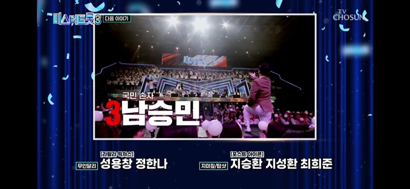 그렇게 모든 무대가 끝난 후 미스터 트롯3 탈락자명단과 함께 미스터 트롯3 순위 결과가 공개되었고, 다음 주는 생방송으로 진행되는 결승전 무대가 진행된다고 한다.