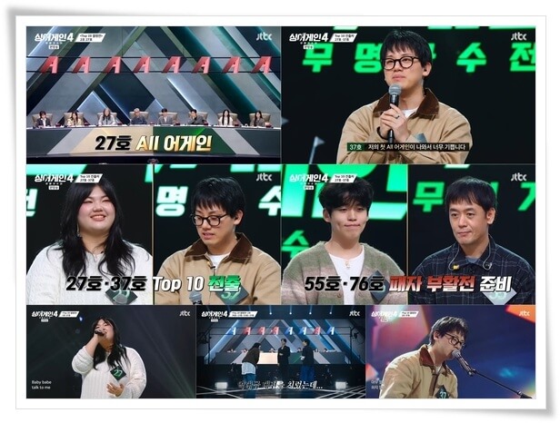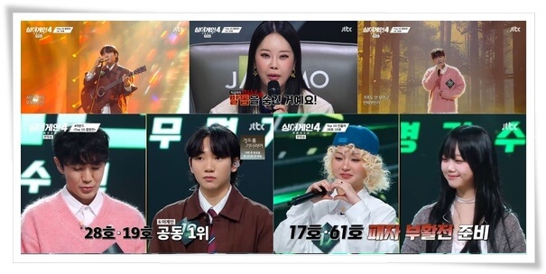 4조는 마지막 순서답게 강렬한 경쟁이 펼쳐졌다. 독창적인 콘셉트와 강한 무대 장악력이 돋보이는 27호는 매 라운드마다 발전하는 기세를 이어가며 TOP10에 이름을 올렸다. 반면 44호는 뛰어난 보컬 실력을 보여줬지만, 편곡과 감정 표현의 디테일에서 다소 미흡한 부분이 지적되며 안전권 진입에 실패했다. 이승기의 멘트처럼 마지막까지 누가 살아남을지 알 수 없는 조였고, 현장 분위기도 어느 때보다 뜨거웠다. 결국 4조에서는 한 명만 TOP10에 합류하며 긴장감을 끝까지 유지했다.