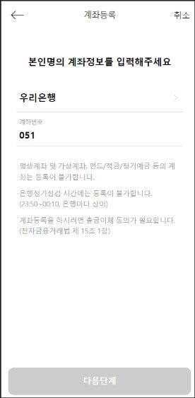 3. 앱에서 결제계좌 등록