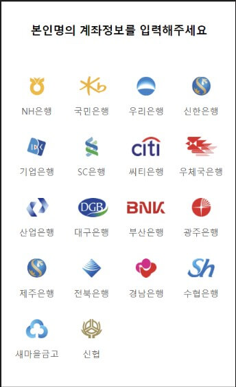 인터파크 티켓 결제수단 등록을 하기 위해 은행계좌를 선택하면 비밀번호 6자리를 등록하고, 등록할 계좌 은행을 선택한 뒤 본인명의의 계좌 정보를 입력해 준다. 인터파크 티켓 결제수단에 등록이 가능한 계좌 은행은 NH, 국민, 우리, 신한, 기업, SC, 시티, 우체국, 산업, 대구, 부산, 광주, 제주, 전북, 경남, 수협, 새마을금고, 신협 등이 가능하고 만약 카카오뱅크를 통한 계좌등록을 원한다면 아래의 포스팅을 참고하자.