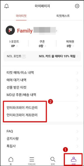 놀티켓(인터파크 티켓) 결제수단 등록하기 >>