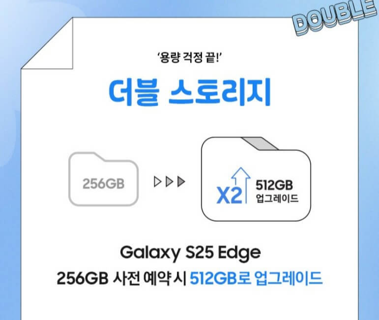 기본적으로 주어지는 갤럭시 s25 엣지 사전예약 혜택으로는 더블스토리지 + 최신 갤럭시 반값 보장 + 액세서리 패키지 할인 쿠폰 + 3개월, 6개월 구독권을 제공하고,