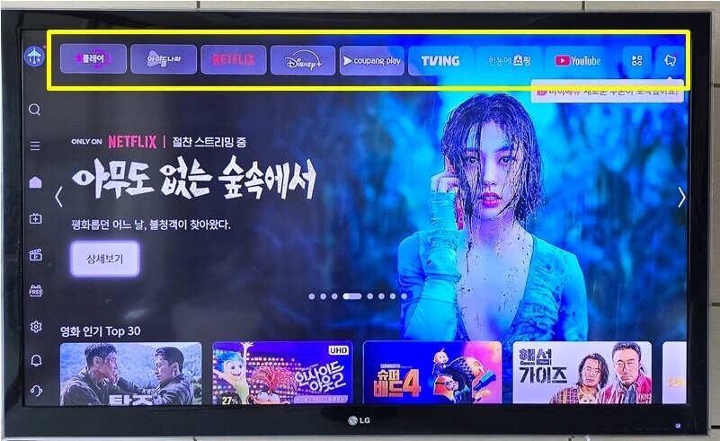 집에서 사용하는 tv가 스마트 tv라면 바로 쿠팡 플레이뿐만 아니라 모든 OTT 서비스를 tv로 시청할수 있다. 스마트 tv가 아닐 경우에는 크롬캐스트를 연결하거나 미러링을 하는 방법도 있으며 필자는 LG스마트 tv와 lg U+ 를 이용하고 있으니 참고해서 따라 하면 좋을 것 같다. (다른 제조사나 인터넷 tv도 모두 비슷할 거라 생각됨)