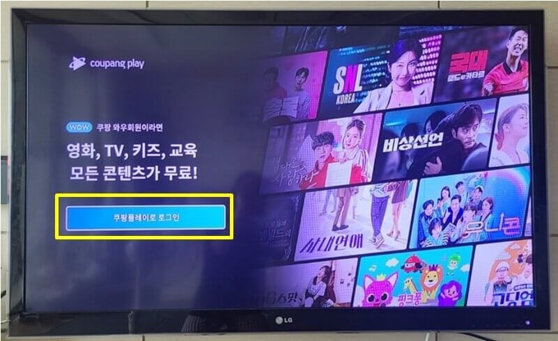 5. 그럼 이제 쿠팡 플레이 tv 연결을 위해서 쿠팡 플레이로 로그인 버튼을 클릭한다.