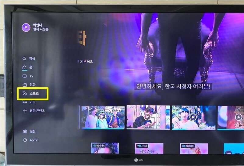 사실 쿠팡 플레이 tv 연결을 하는 분들 중에는 축구 중계를 보기 위해서인 분들이 많을 것 같다. 나 또한 드라마보다 스포츠를 볼 때 tv로 보는 편이긴 한데 tv에 설치된 쿠. 플을 실행하여 로그인 한 뒤 메뉴로 들어가서 스포츠를 클릭하면
