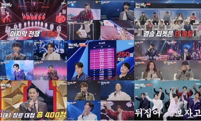 현역가왕2 결승전은 이전 시리즈와 다르게 회차수가 늘어나서 그런지 1라운드와 2라운드 무대로 나누어서 방송된다. 즉 현역가왕2 결승전 날짜는 2월 18일(화)과 2월 25일(화)에 2주에 걸쳐 진행되며 2월 18일인 오늘은 밤 10시부터 결승전 1라운드 무대가 진행되니 참고하자.