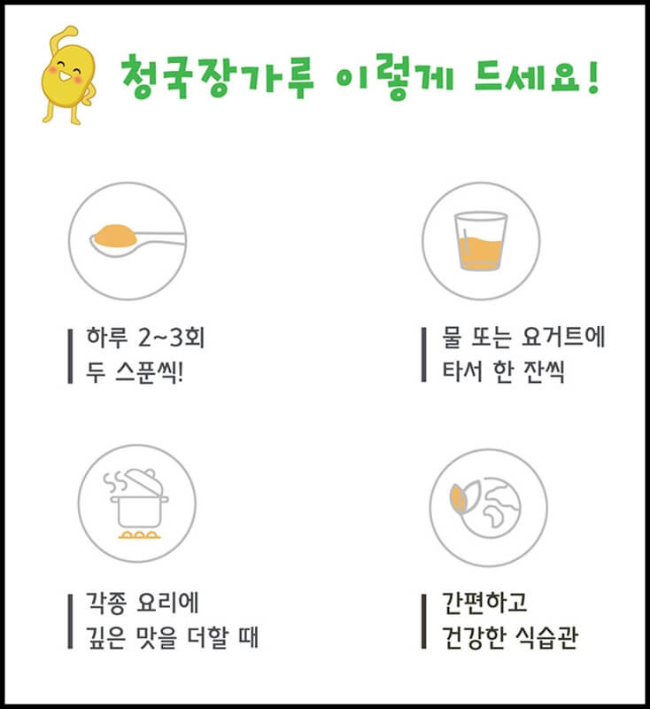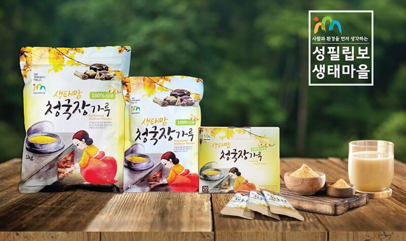 평창 성필립보생태마을 청국장가루는 100% 국내산 콩을 전통방식으로 만든 건강식품입니다. 구수한 맛, 냄새 없는 품질, 다양한 효능을 한눈에 정리했씁니다.