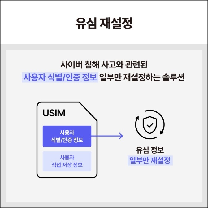 유심 재설정이라고 하는것은 기존 유심의 일부 정보를 소프트웨어적으로 변경하여 해킹 등 보안 위협에 대응하는 기능이다. 즉, 사용자를 식별하고 인증하기 위한 기존 정보 일부를 새로운 정보로 변경하는 방식으로 누군가 기존에 유출된 유심 정보로 복제를 시도라 더라도 시스템 접속이 차단된다고 한다.